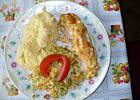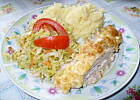 zapiekanka SUPER!!!!!!Maz byl zachwycony.rewelacja!!!!Piersi przyprawilam dzien wczesniej,sol,pieprz,papryka,ziola prowasalskie.Podlalam troszke woda i dalam mniej majonezu i zamiast tluszczyku zrobil mi sie przepyszny sosik.palce lizac.