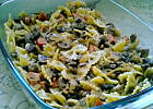 Przyjemna zapiekanka:) Wymieszałam tylko wszystkie składniki w obawie, że warstwy makaronu będą za suche skoro nie ma w składnikach sosu. Reszta bez zmian. Polecam!