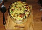 Zapiekanka wyszla bardzo dobra- zamiast makaronu dalam podgotowane ziemniaki oraz piers z kurczaka. Polecam - szczegolnie z tym sosem jogutowo - czosnkowym ( z braku swiezego dalam 1 1/2 lyzeczki granulowanego ).