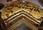 Ciasto przepyszne,na pewno zagości częściej na moim stole.Mam tylko jedno pytanko,a mianowicie-nasączając placek orzechowy cały poncz nie chciał w ogole "wejść" w ciasto.Po prostu pływał sobie po placku :D.Czym to mogło być spowodowane?Może dlatego,że orzechy są tłuste,i nie chciały przepuścić w ciasto żadnych innych płynów?Zaznaczam,że placek, jak i nasączenie robiłam zgodnie z przepisem.Więc po małych problemach ostatecznie nasączyłam ciasto ciemne. I wszystko w smaku wyszło pycha.Ciacho zrobiłam na swoje imieniny, zaniosłam do pracy, wszyscy prosili o przepis:D .Z tego talerza ciasto znikło w oka mgnieniu,na szczęcie zdążyłam zrobić fotkę;-)Ciasto naprawdę znakomite,pozdrawiam