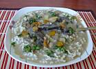 Po raz kolejny - tym razem ze świeżych koźlaczków i prawdziwków, z ziemniakami i makaronem świderki, dużą ilością zieleniny i pokrojonym w małą kosteczkę żółtym serem. Mmm..